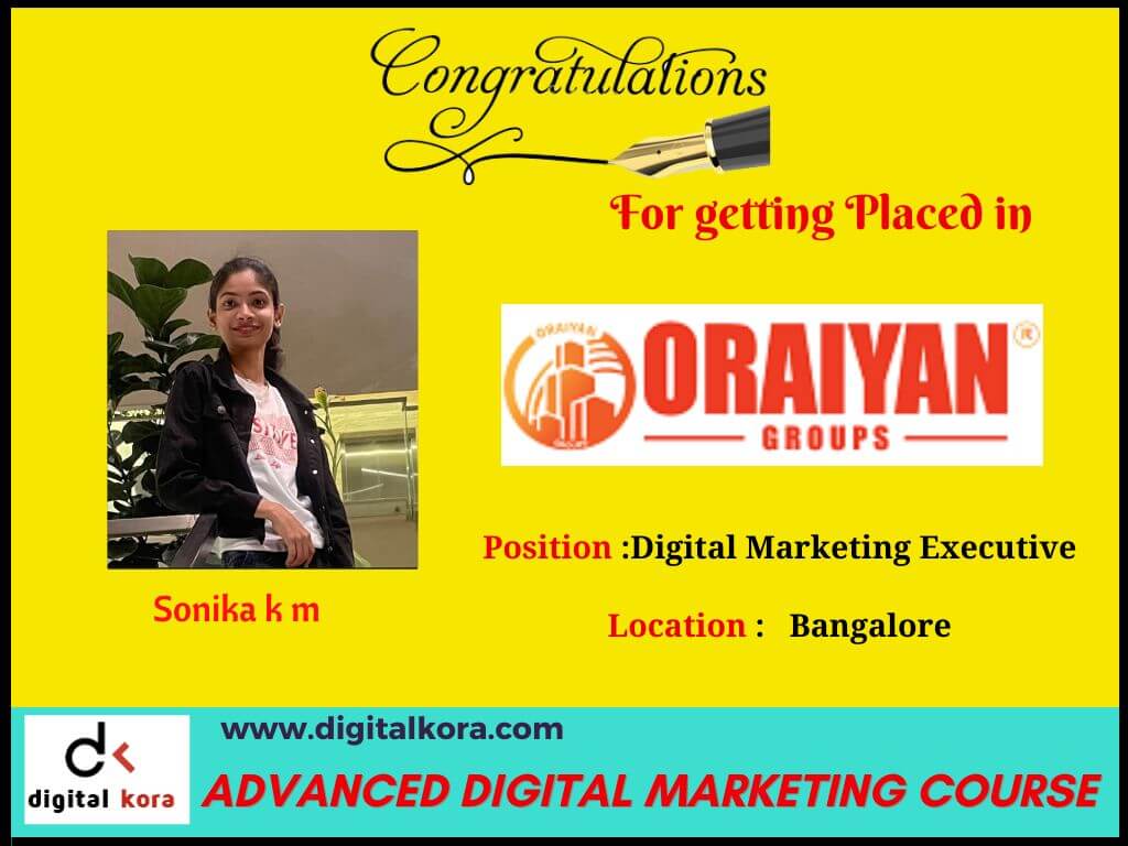 Digital Kora is the best digital marketing training institute in Bangalore. If you are looking for digital marketing course near to marathahalli,BTM,Hebbal,Electronic city,kammanahalli,Indiranagar then visit Digital Kora nearest branch. We are providing best Digital marketing training in Bangalore since 2013. See the placements in our website. Digital Kora is a brand name for placements in Bangalore. Top digital marketing training institute in Bangalore. Call us for free demo.