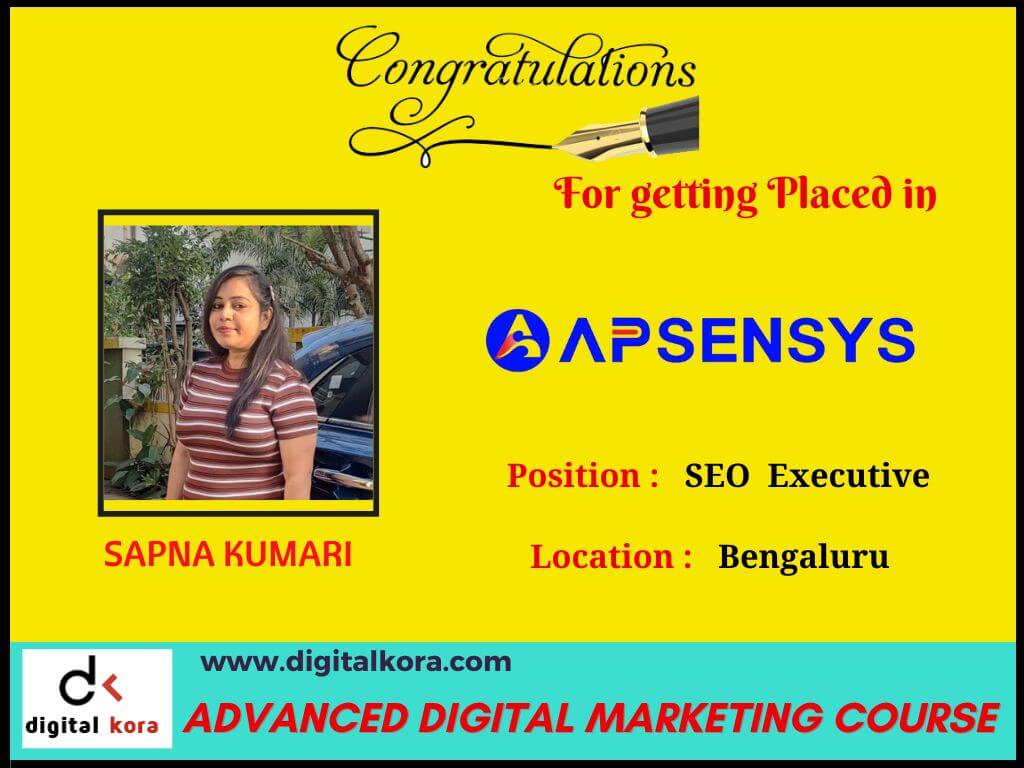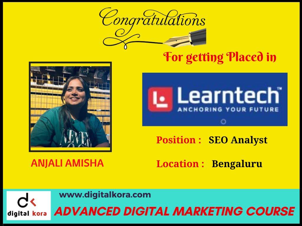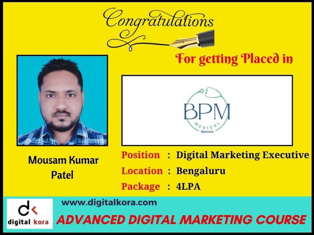 Joining Digital Kora was the best decision for my career. The trainers explain every concept with real-time examples, and the daily practice sessions helped me build strong hands-on skills. Their placement support is truly amazing—I cracked my first interview with confidence. If you're serious about a digital marketing career, Digital Kora is the place to be